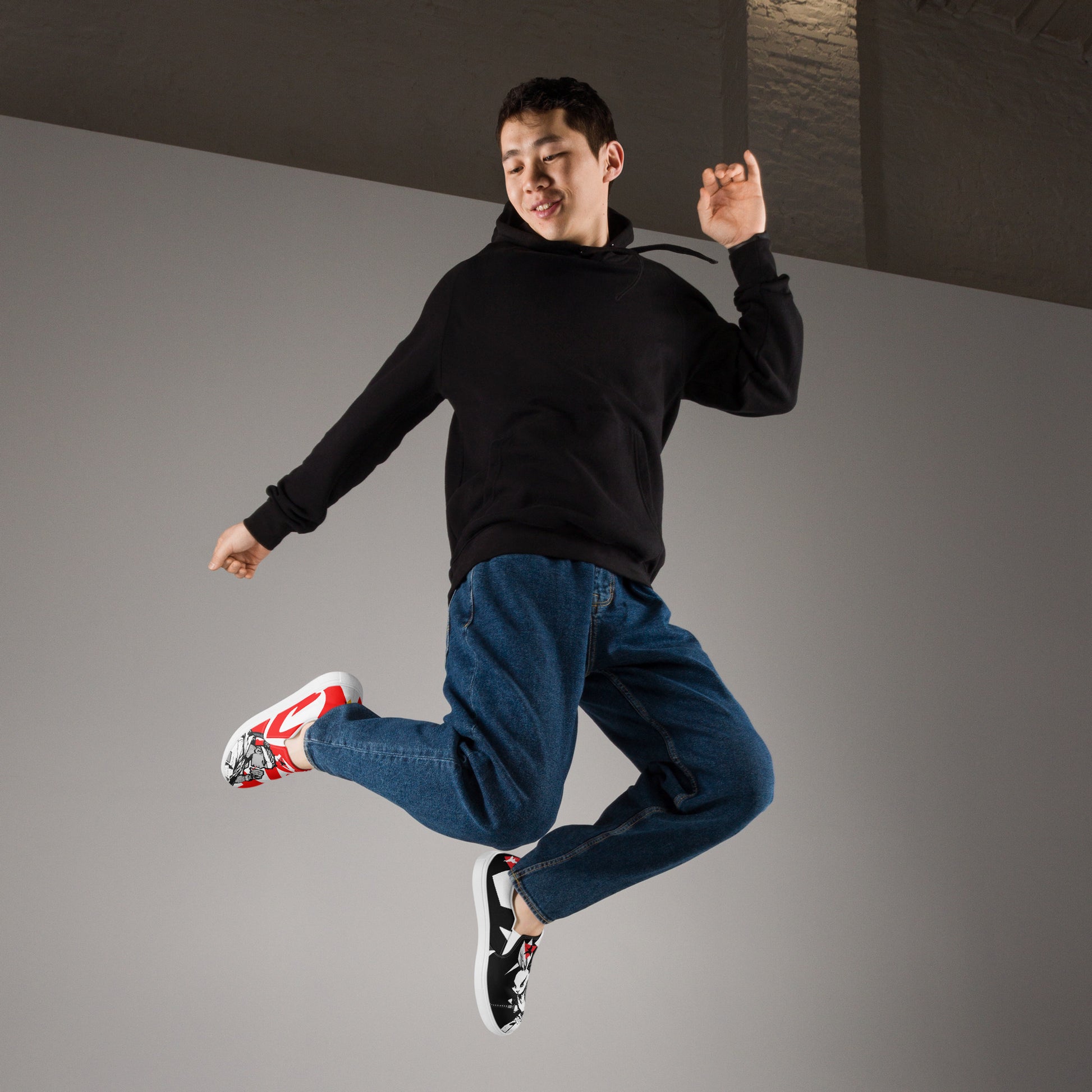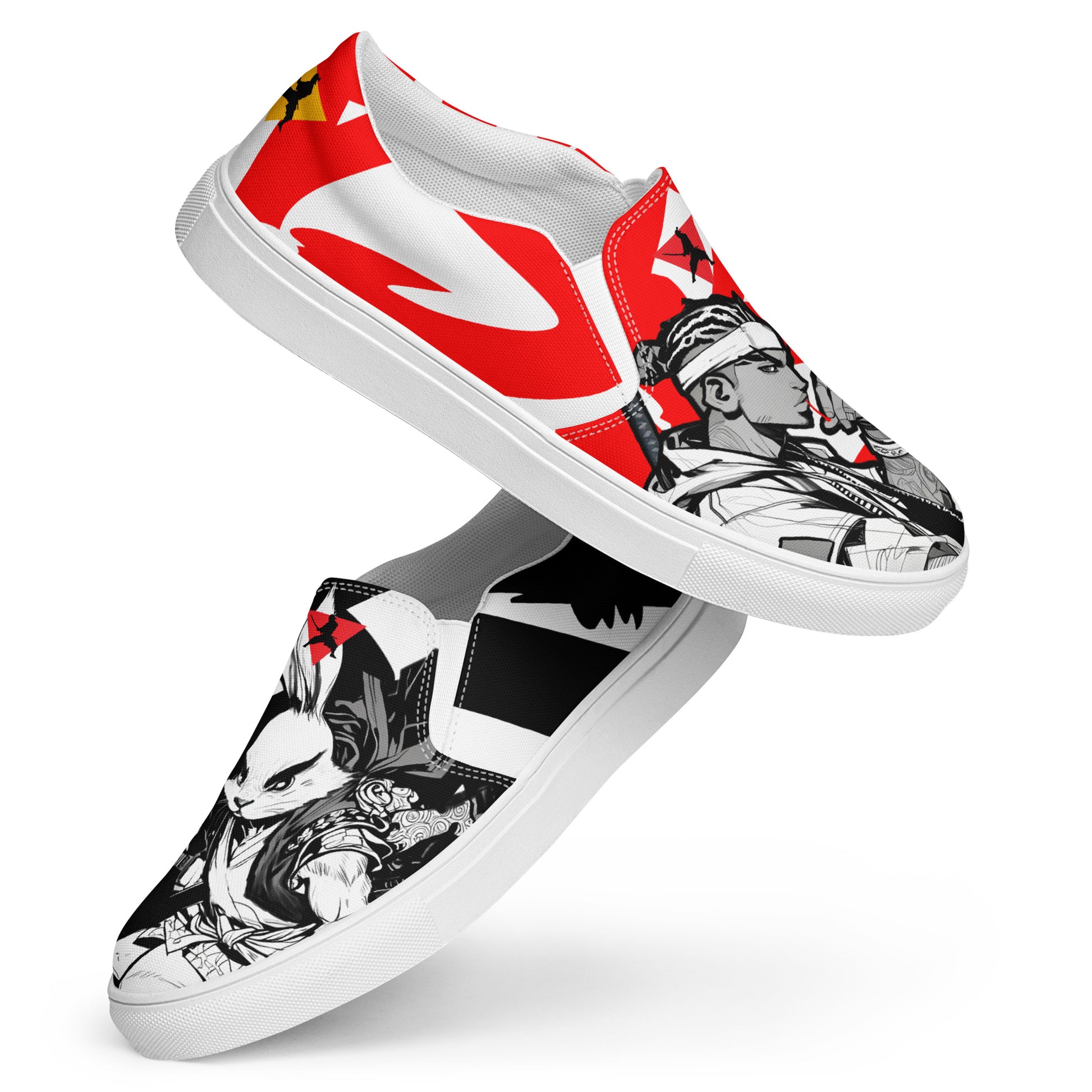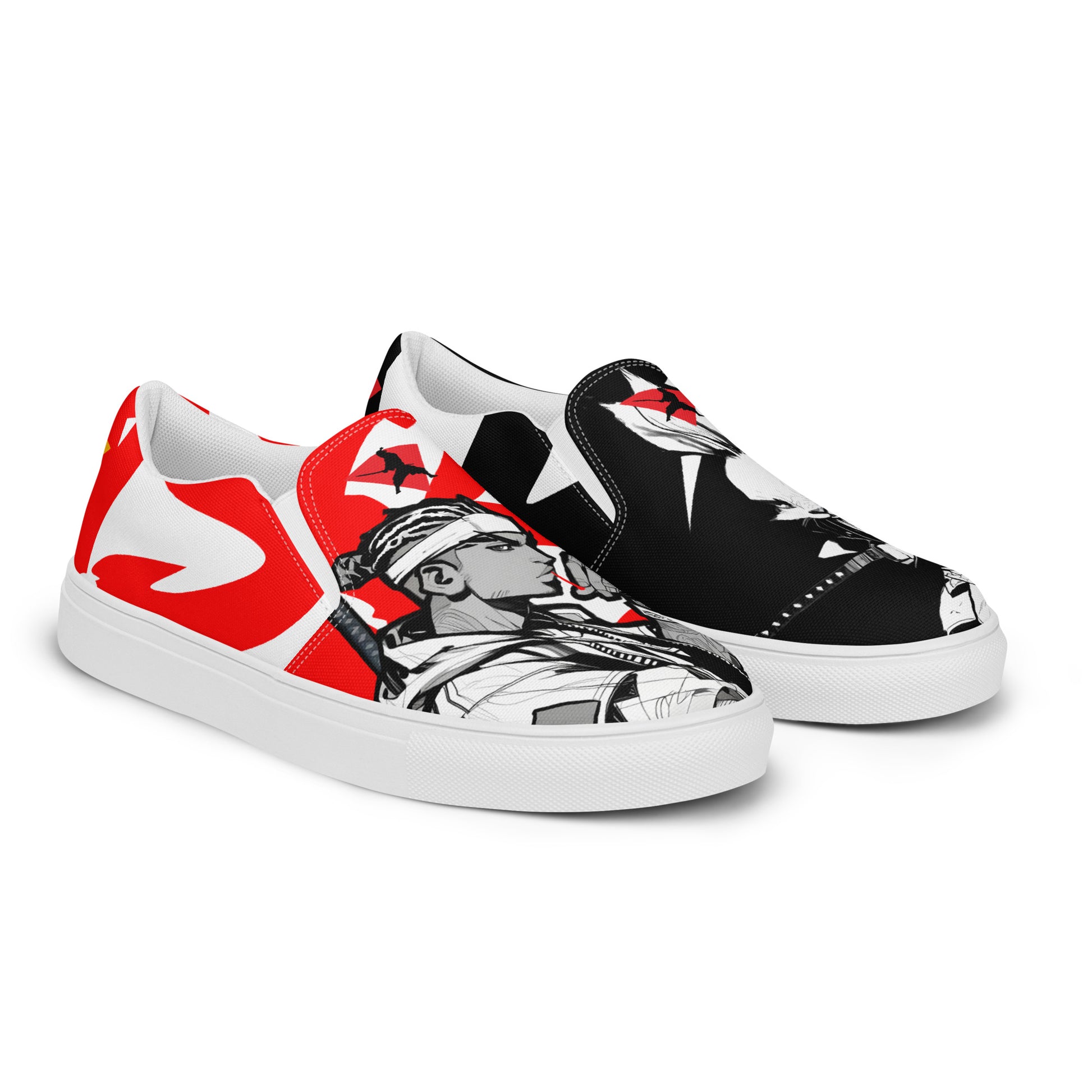 Red and black greyscale | Men’s slip-on canvas shoes